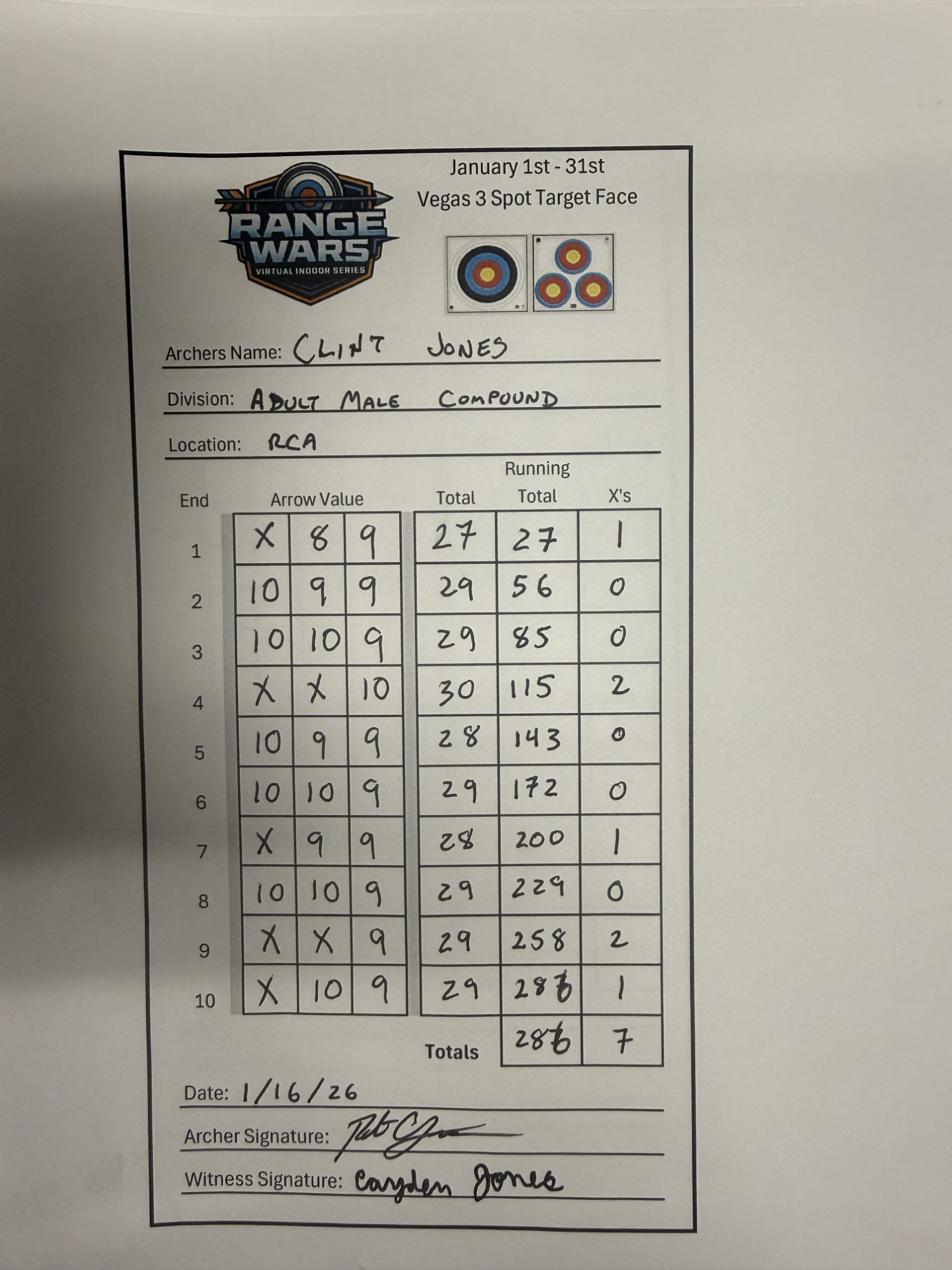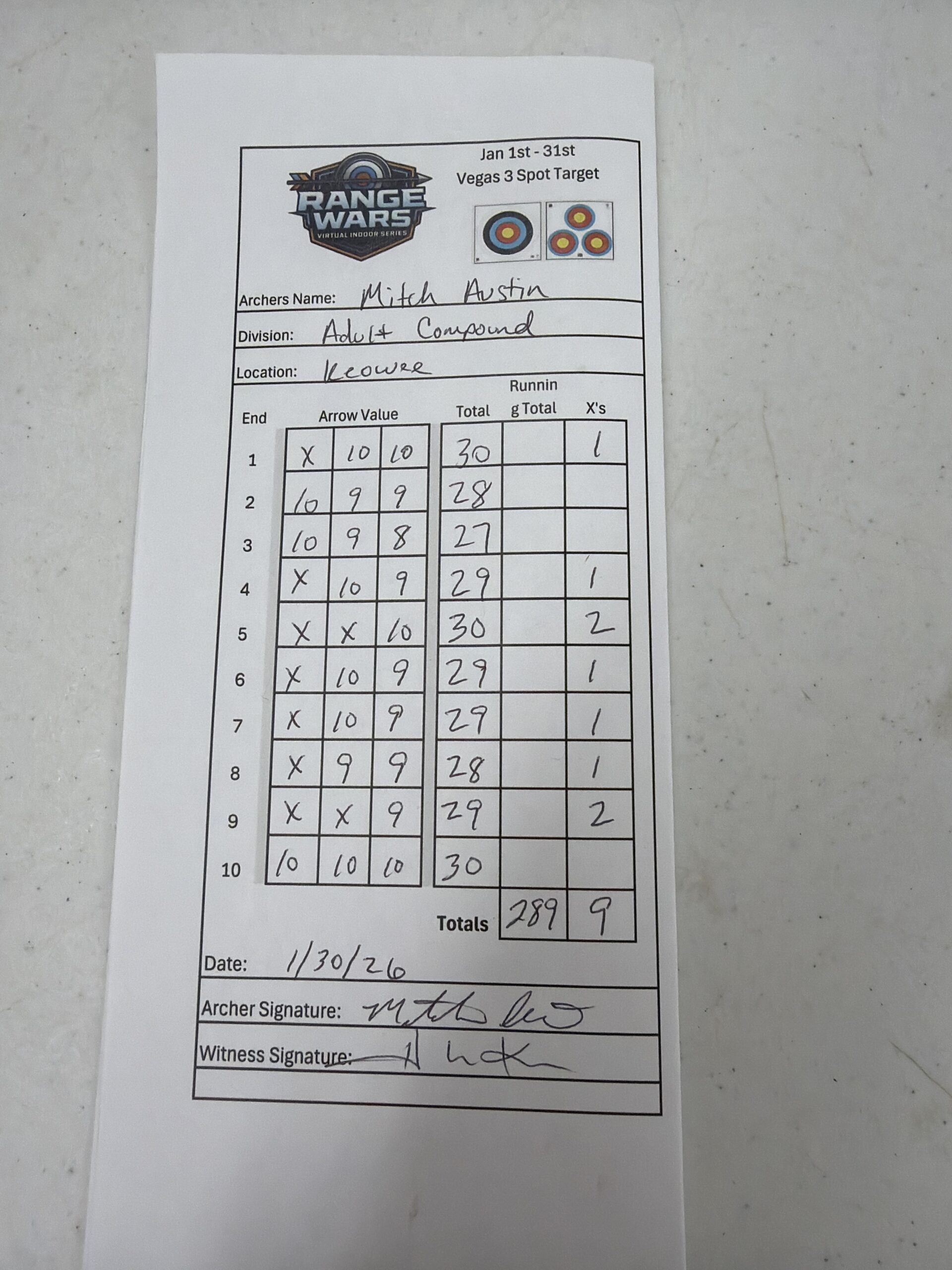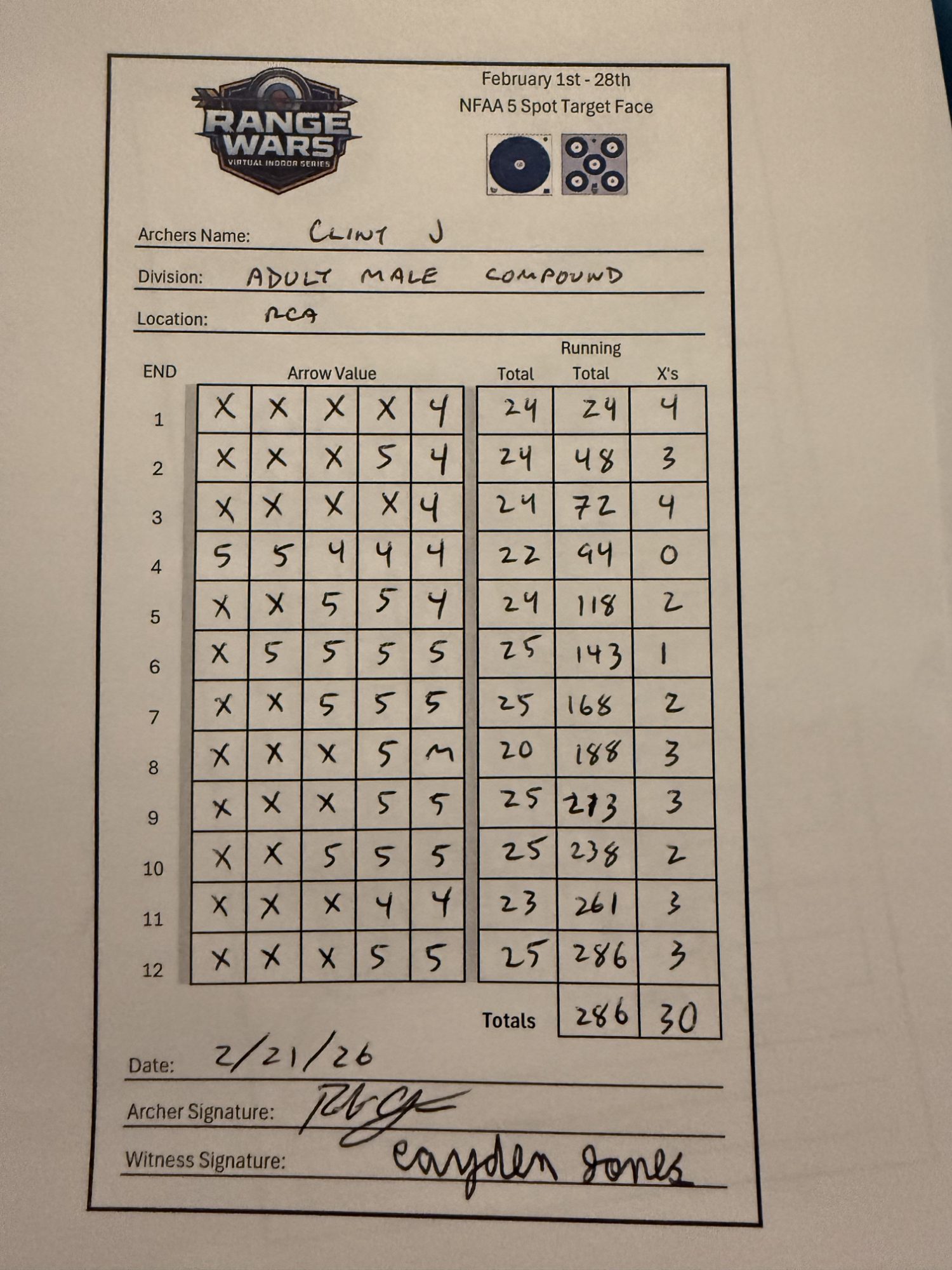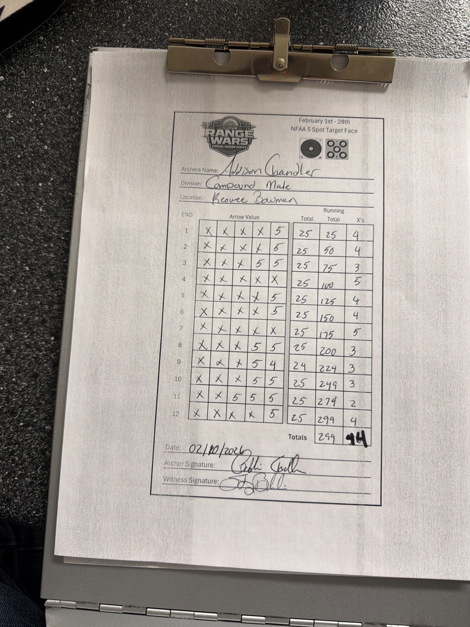 | # | Archer | Vegas Best | Vegas 2nd Best | NFAA Best | NFAA 2nd Best | Total (Top 2 Vegas + Top 2 NFAA) |