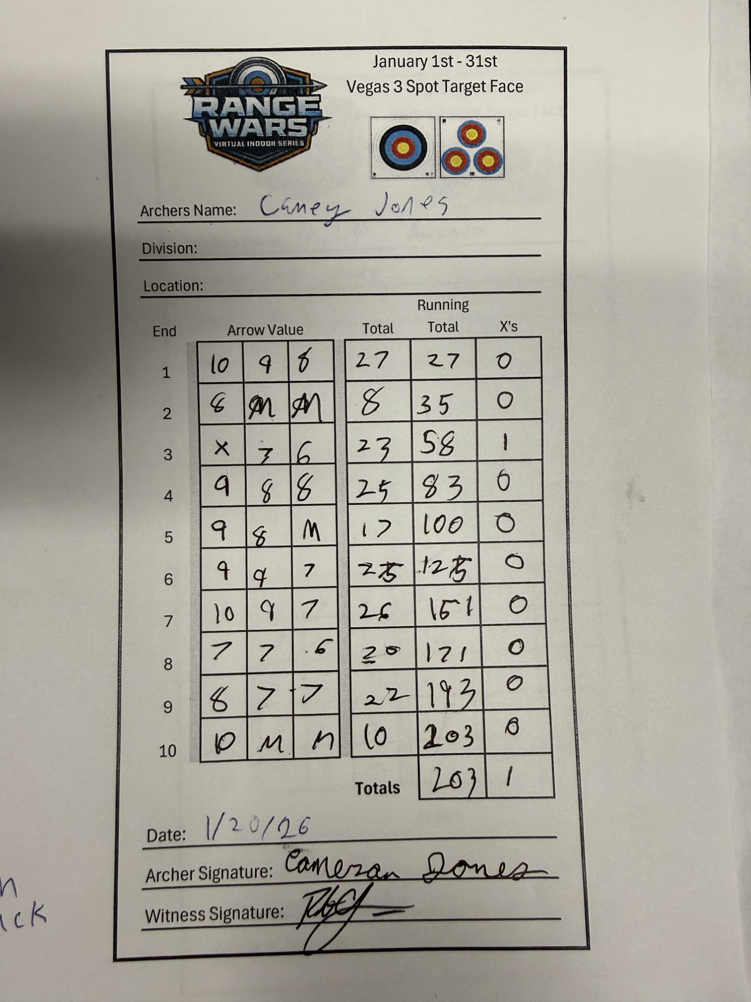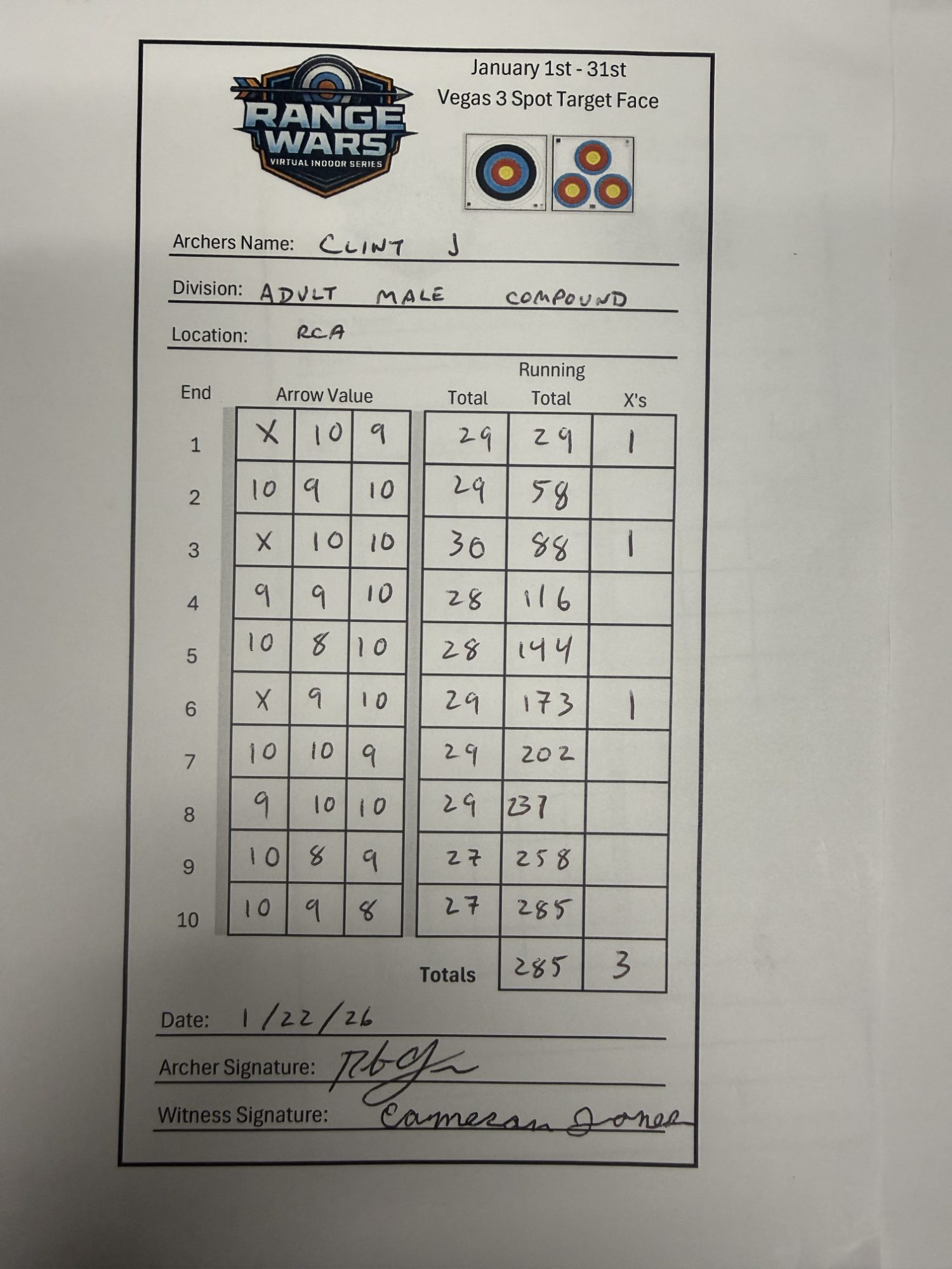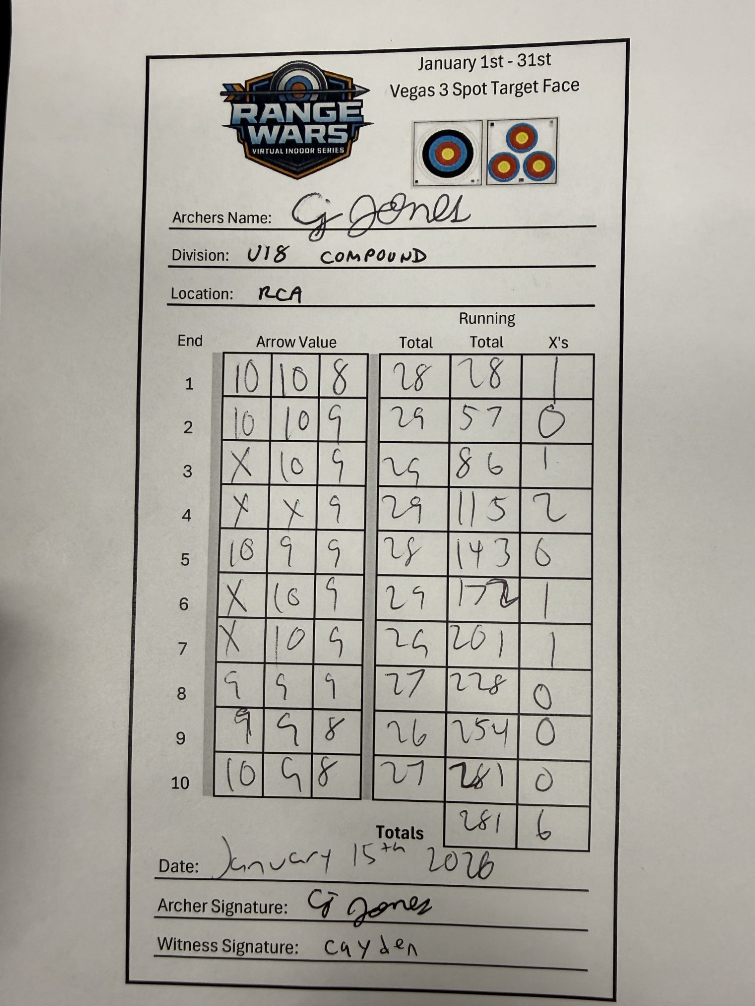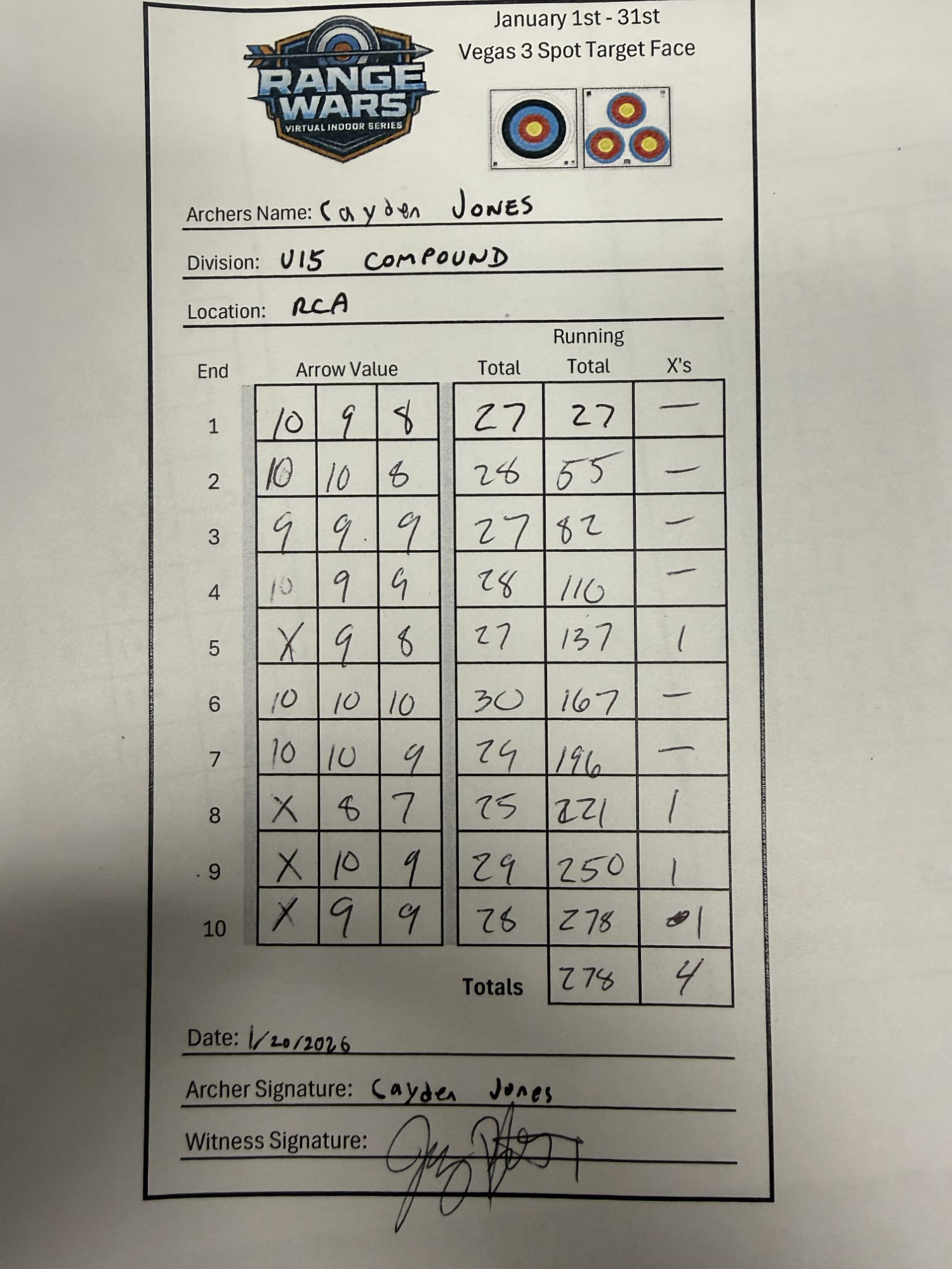 | # | Archer | Vegas Best | Vegas 2nd Best | NFAA Best | NFAA 2nd Best | Total (Top 2 Vegas + Top 2 NFAA) |