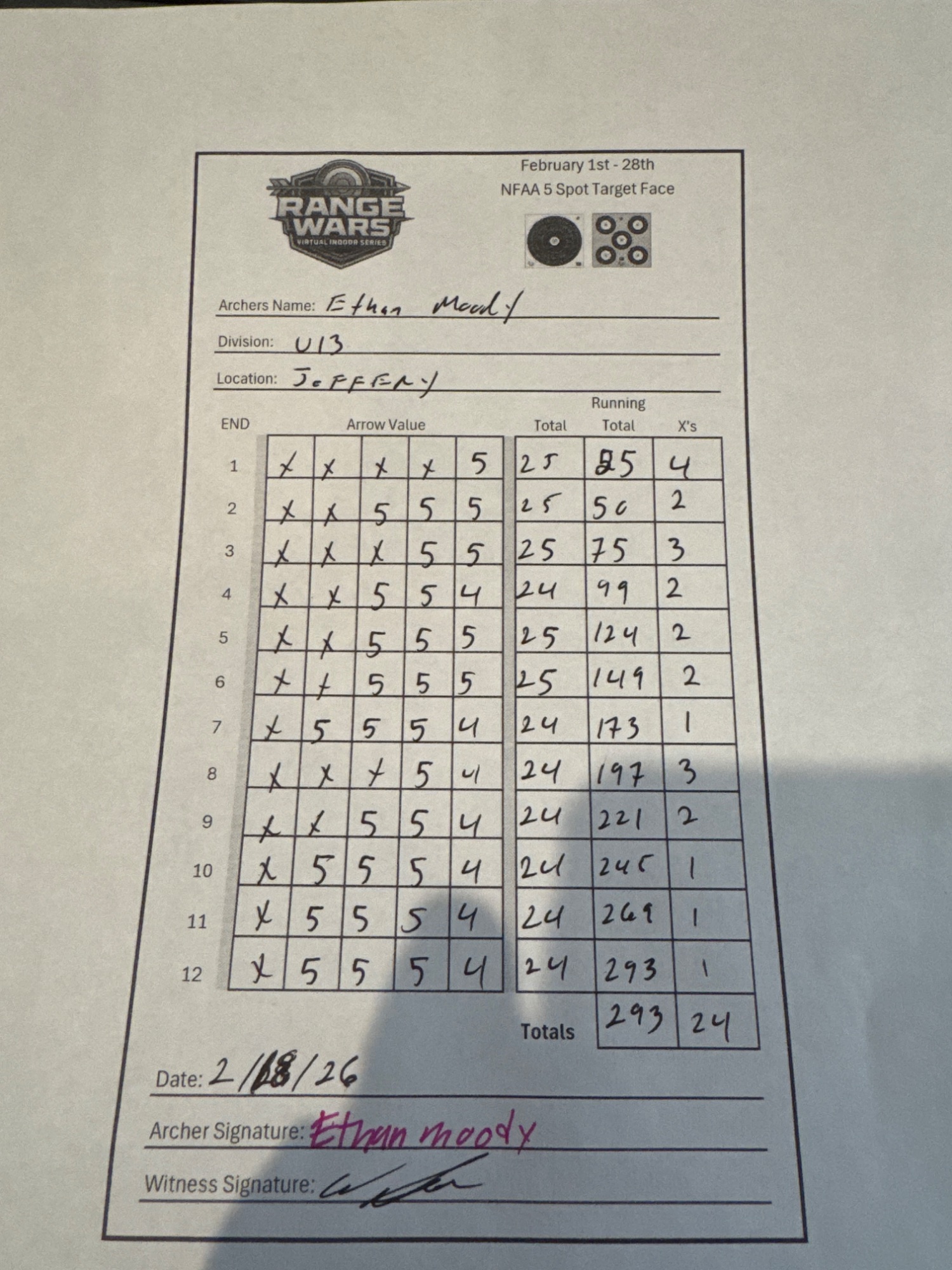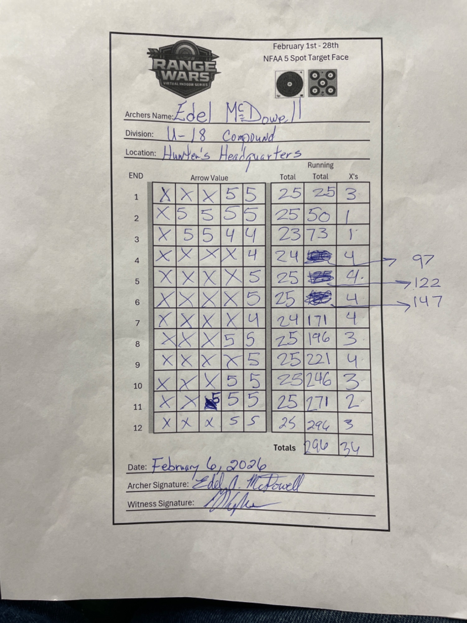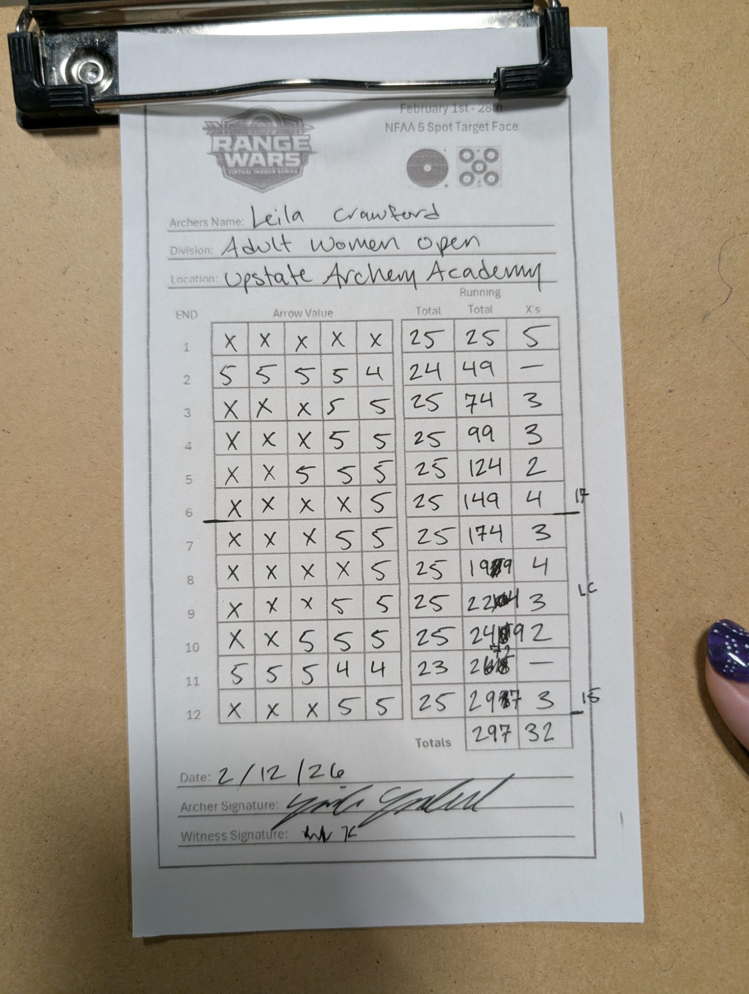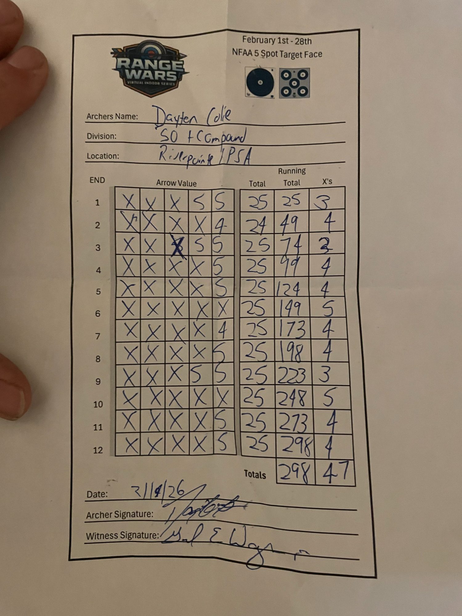 | 2 | Addison Chandler | 294 | 292 | 299 | 299 | 1184 |
