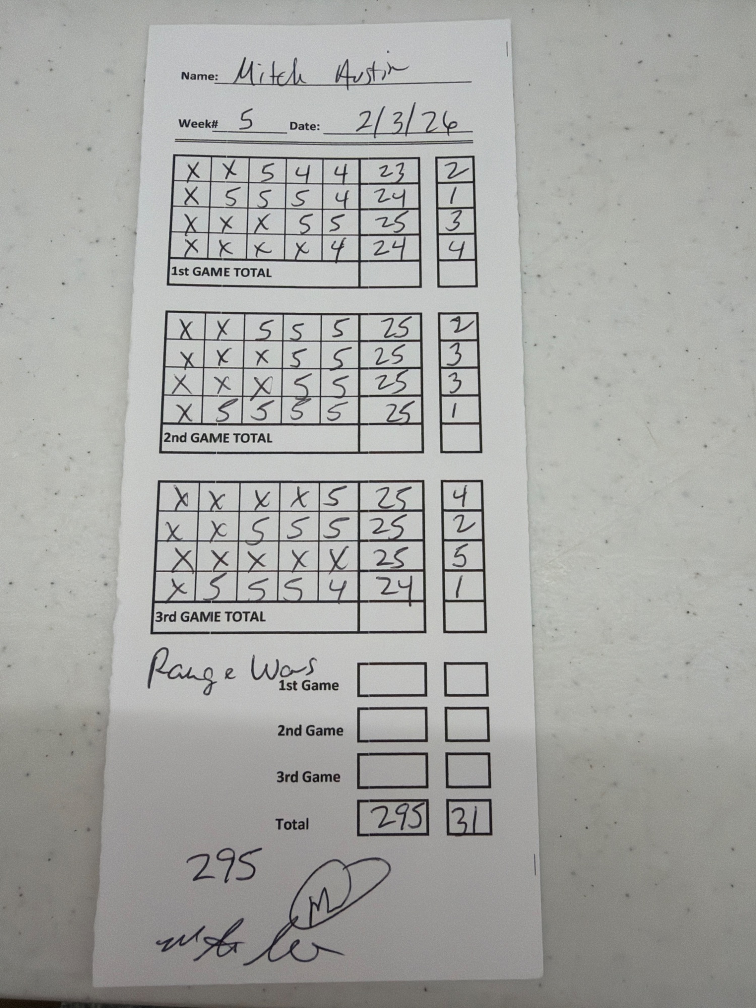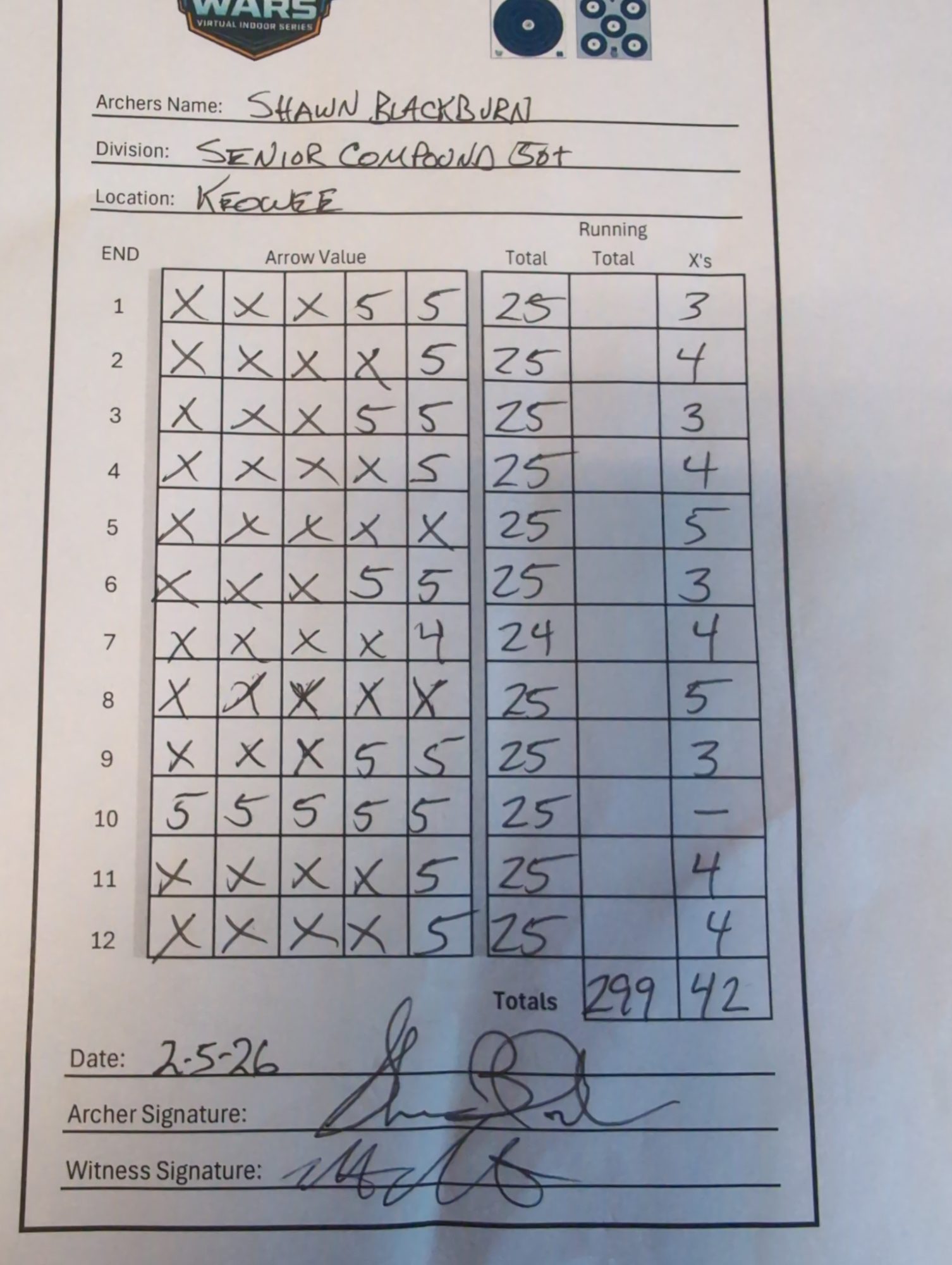 | 5 | Shawn Blackburn | 295 | 293 | 299 | 0 | 887 |